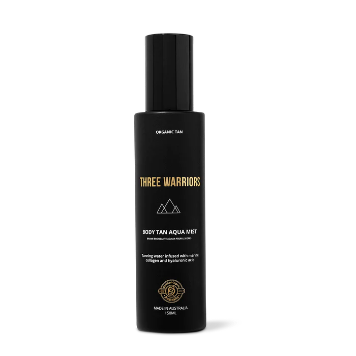 Three Warriors Body Tan Aqua Mist is a certified organic tanning water formulated with nutrient-rich, skin-loving ingredients designed to leave the body revitalised and boasting a dewy, natural glow.